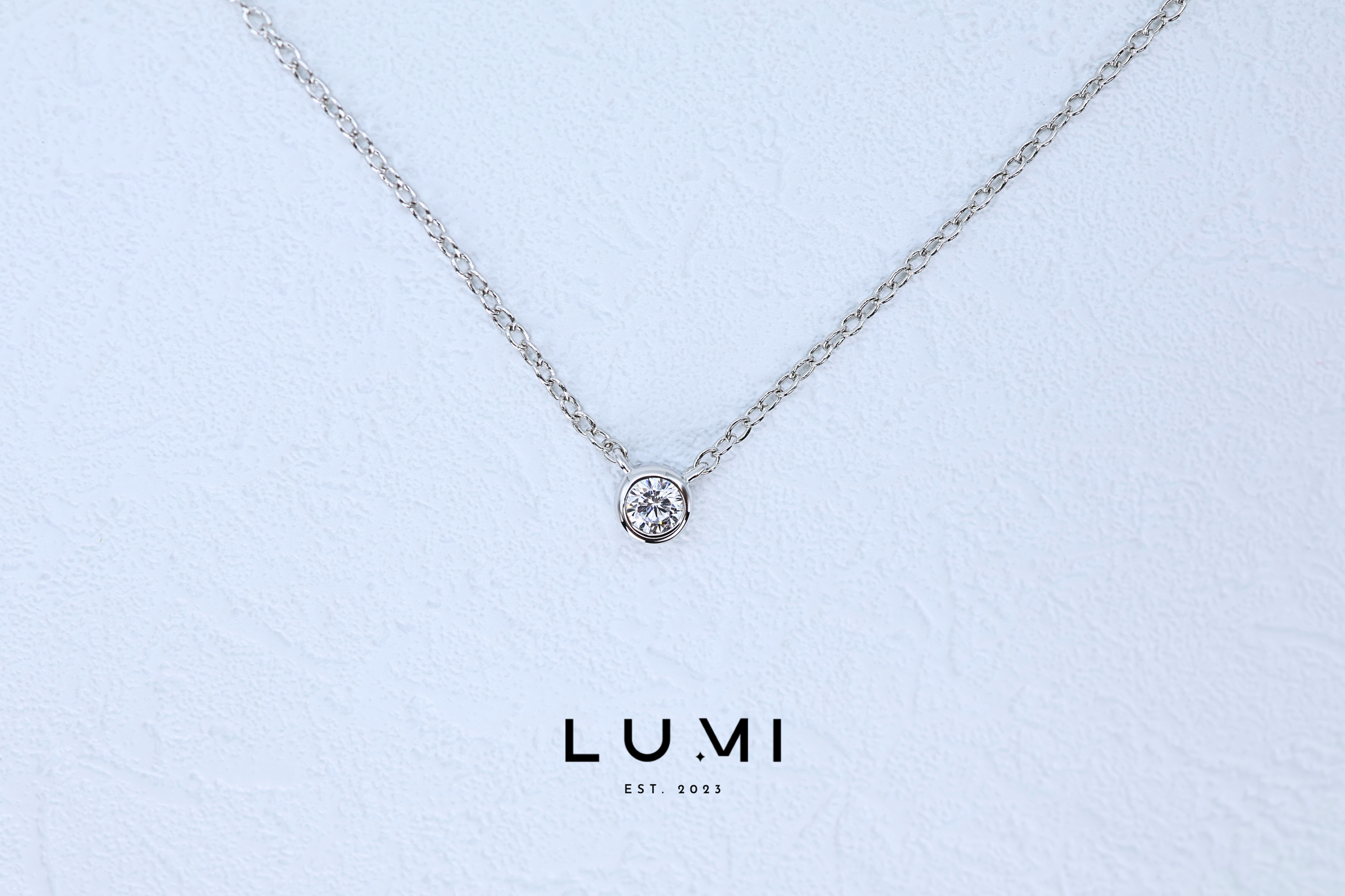 LUMI - Rhodium Plated, Sterling Silver Bezel setting Necklace